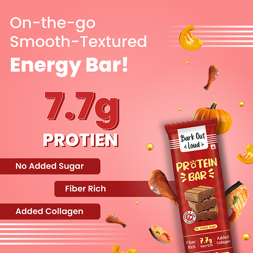 - PALATABLE PROTEIN - Mindfully crafted, the Protein Bar by Bark Out Loud is made of the deliciousness and super protein power of animal and plant based ingredients. Made of chicken, fish and pumpkin, smooth-textured delectable protein amalgamation which is nutritionally abundant. This dog treat helps in a more healthier and energised life for your pet. With crude protein(min.) 22% and crude fat (min.) 7%, and crude fibre (max) 4%, our protein bar is dietically well balanced with a blend of nutrients.