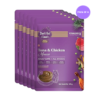 - Nutritious Taste: The ultimate cat pleaser, the Bark out Loud Tuna and Chicken Mousse is the perfect bowl full of love, taste, and nutrition. Crafted in Thailand with ingredients, our wet food is a wholesome blend of dietary essentials such as meat, tuna serves an abundance of proteins, vitamins, and minerals, and the tuna and chicken mousse is a balanced hydrated blend of nutrients for adult cats.
