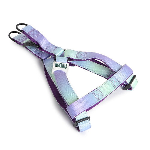 This harness combines a vibrant green and purple print with high-quality materials to ensure both aesthetic appeal and functionality. The adjustable straps provide a secure and customized fit, while the comfortable padding ensures ease during long walks. Whether you're training a puppy or taking your dog for a daily stroll, this harness offers the perfect blend of style and performance.