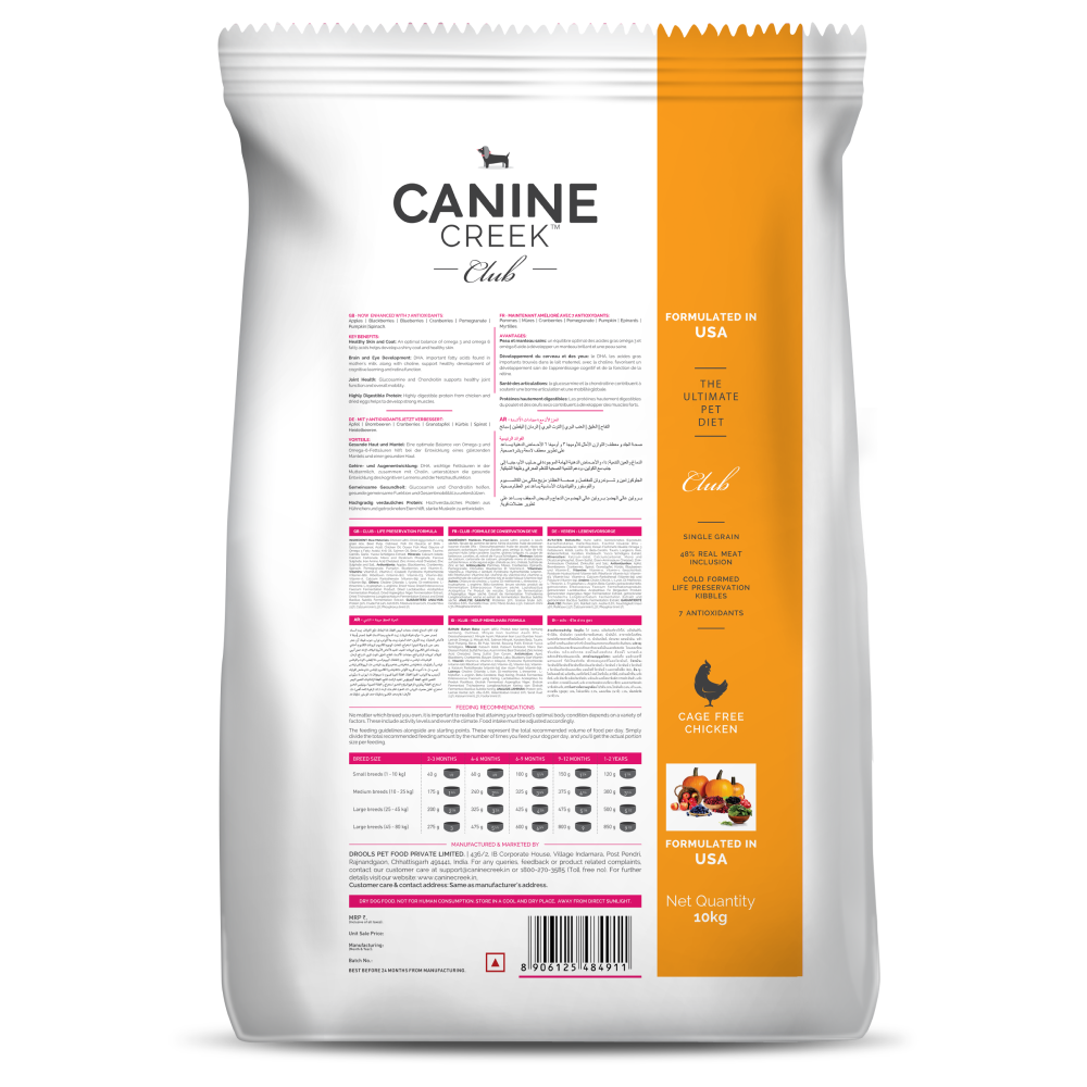 Canine Creek Club Ultra Premium Dog Food is a specialized and nutritionally rich dog food formulated to provide comprehensive benefits to your canine companion. Here are the key features, along with the list of ingredients: