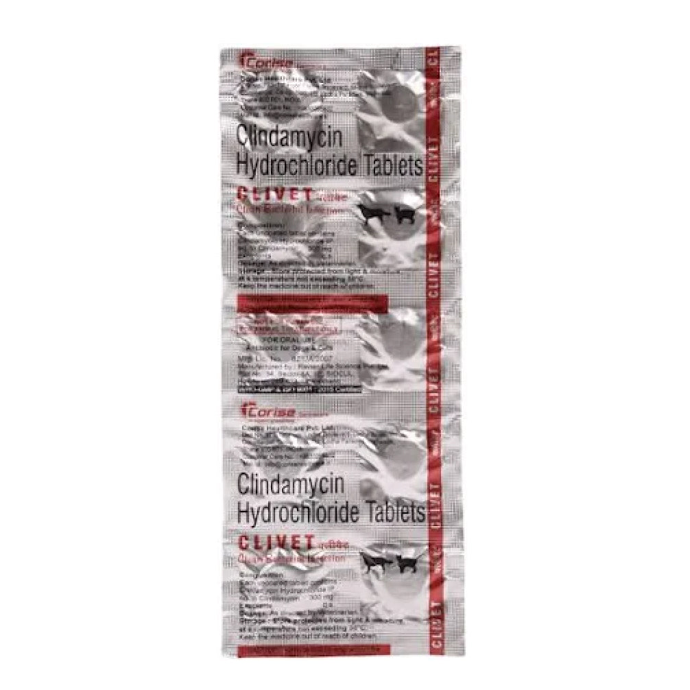 Clivet contains Clindamycin. It is most effective & successful in the treatment of bone disorder like osteomyelitis in dogs and cats. It has high tissue concentration and effective in the treatment of soft tissue skin infections like pyoderma, wound and abscess. It is also indicated in treatment of dental infections and babesiosis.