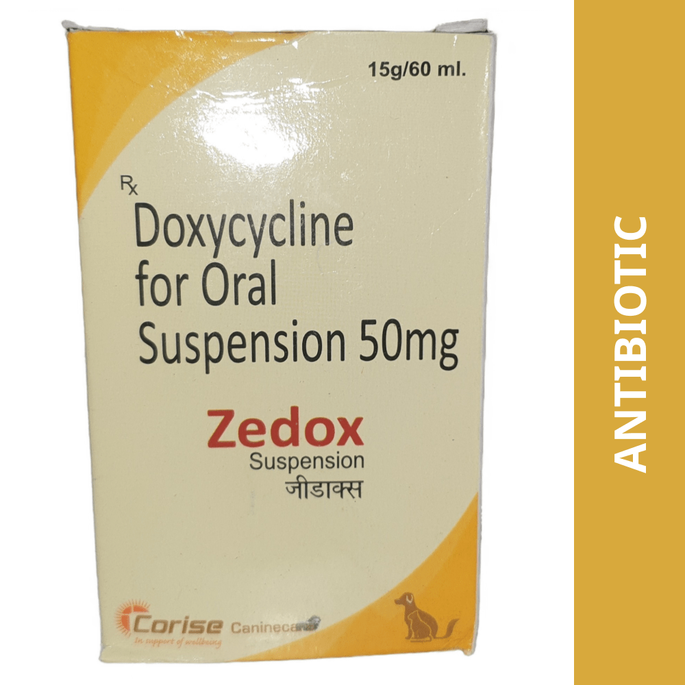 Zedox suspension contains doxycycline. Doxycycline is a broad spectrum antibiotic of tetracycline class which is used for treating bacterial infections. It is effective against Gram Positive & Gram Negative Bacteria.
