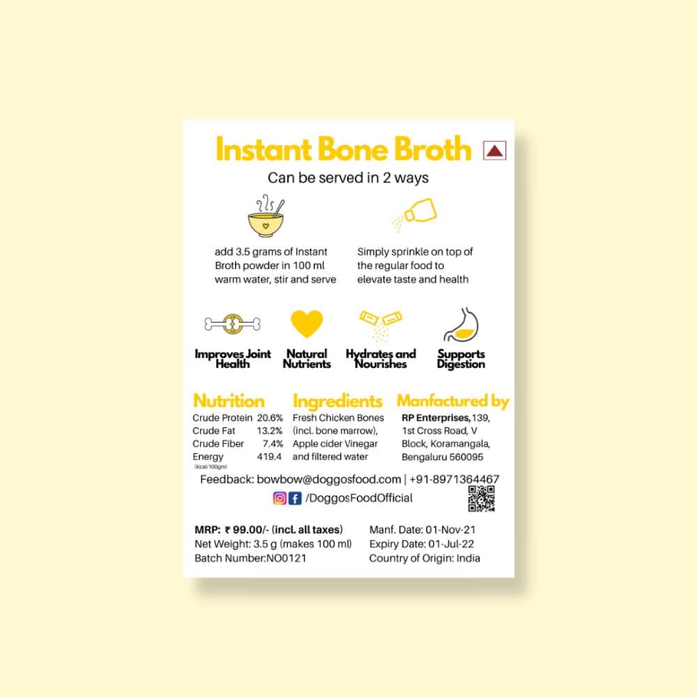 - Simply sprinkle or pour the 100ml of broth on your pet's kibbles, and get goodness of chicken bone broth in a meal.