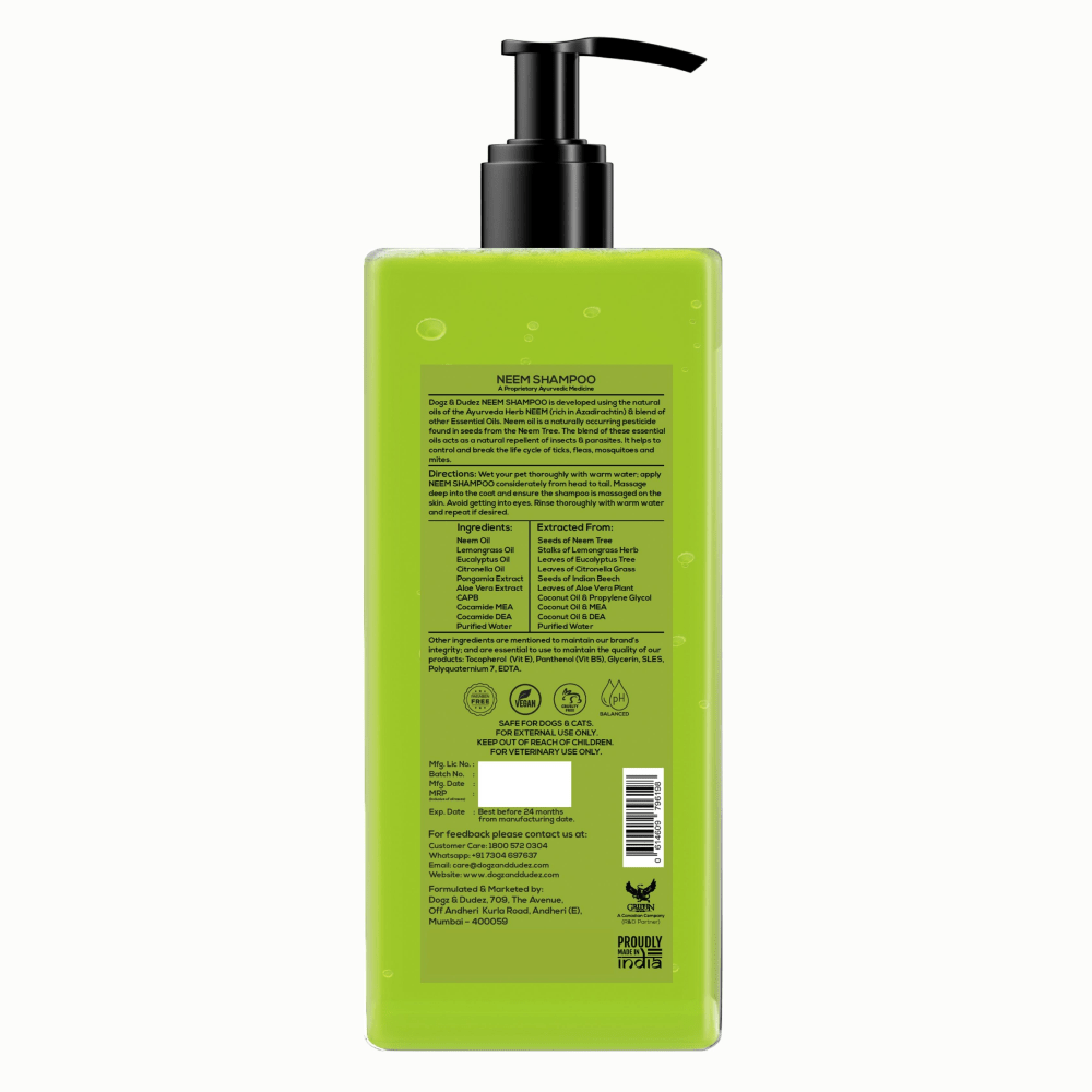 - Neem (natural ayurveda herb) enhanced with lemongrass helps in controlling and breaking the lifecycle of ticks. Whereas, the water-like texture gets easily washed off your dog, not leaving any shampoo on your pets fur/skin. Thereby, providing effective cleansing.; use it guilt-free as it is 100% vegan, cruelty free and a proudly made in India ticks shampoo for dog.