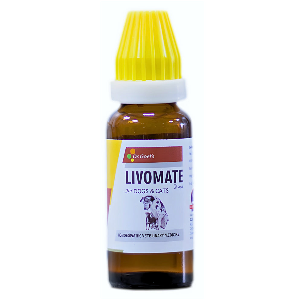 LIVOMATE DROPS for pets is the best remedy for LIVER problems where symptoms like indigestion, vomitings, eating of inanimate objects, stomachache, etc. LIVOMATE DROPS is the best Homeopathic Veterinary Medicine for Dog and Cat in cases of uneasiness during nightstand approaching a veterinarian is difficult.