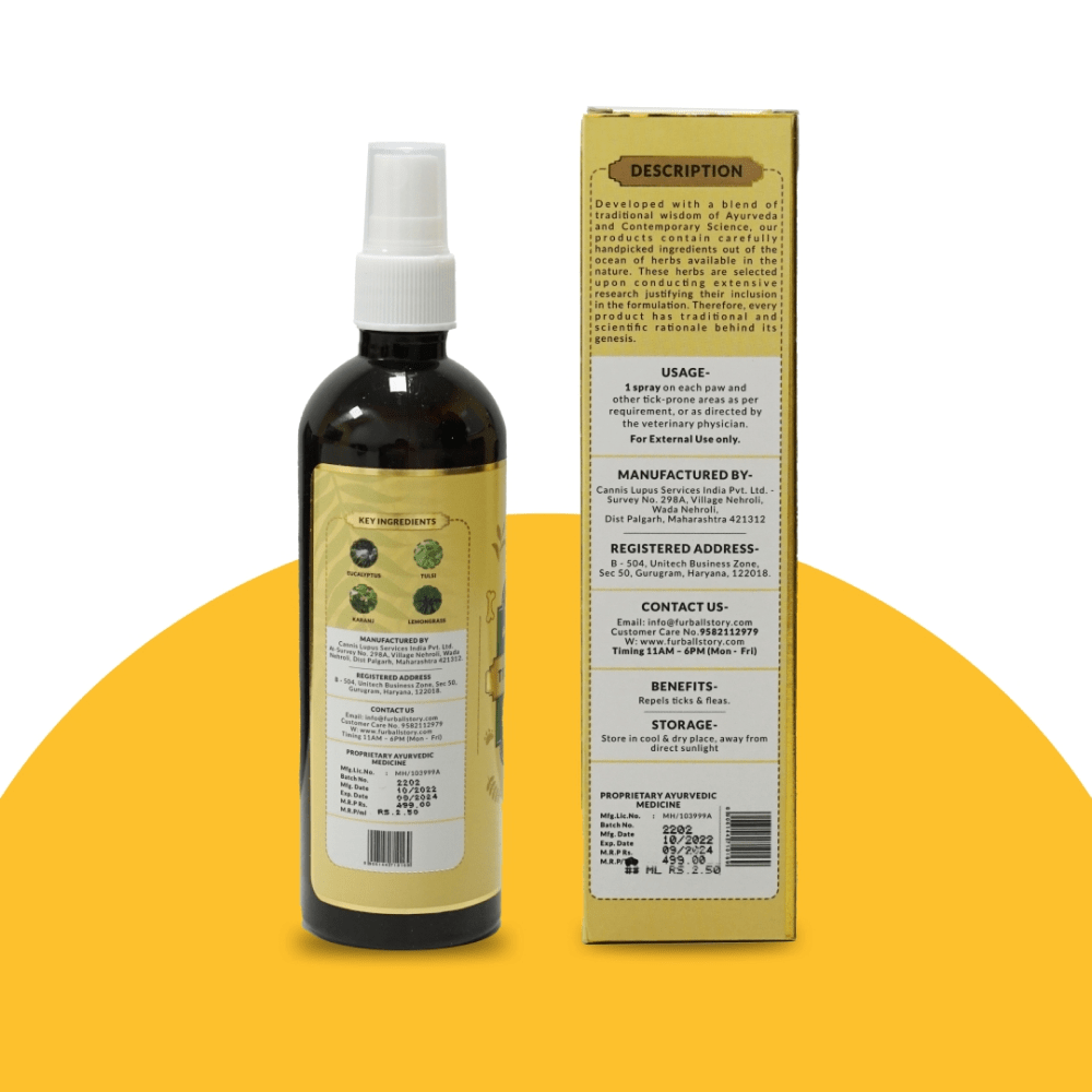Protect your dog from pesky fleas, ticks, and other external parasites with the FurBall Story Tick & Flea Spray for Dogs. This natural, non-toxic spray offers fast-acting relief and long-lasting protection, ensuring your dog stays comfortable, itch-free, and free from harmful parasites all year round.