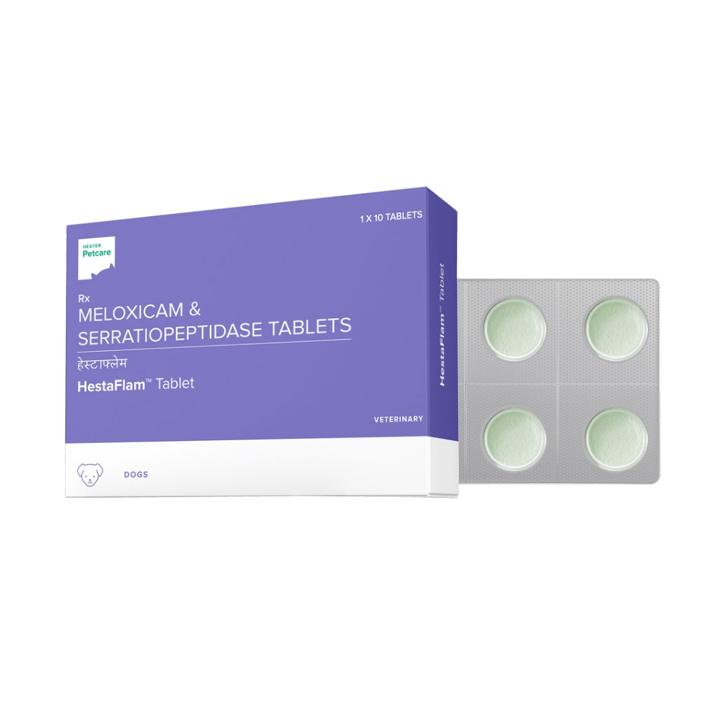 Hestaflam is a non-steroidal anti-inflammatory drug (NSAID) for pets, primarily used for pain relief and inflammation control in dogs and cats. It is highly effective for managing arthritis, joint pain, post-surgical pain, and musculoskeletal disorders. This medication provides long-lasting pain relief and improves mobility in aging or injured pets.
