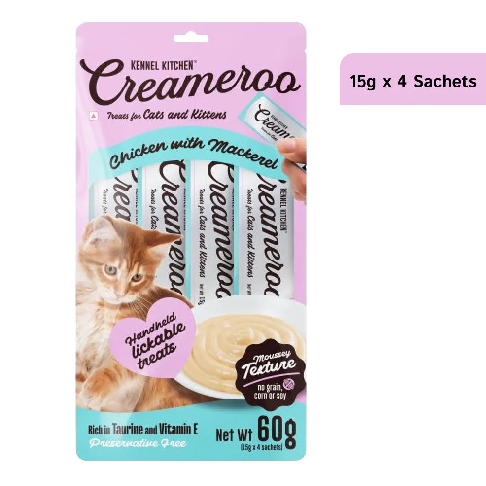 Great for kittens, adult cats, and senior felines, Kennel Kitchen Creameroo Chicken with Mackerel is the perfect way to pamper your pet with pure goodness and love.