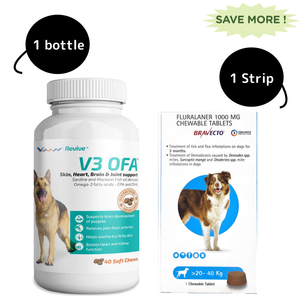 MSD Bravecto Chew (20–40kg) & Vvaan V3 OFA Tablet Combo for Dogs