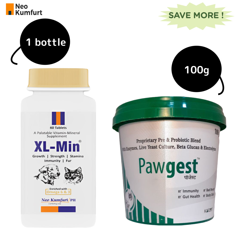 Neo Kumfurt XL Min Tablet and Pawgest Powder (100g) for Dogs and Cats Combo