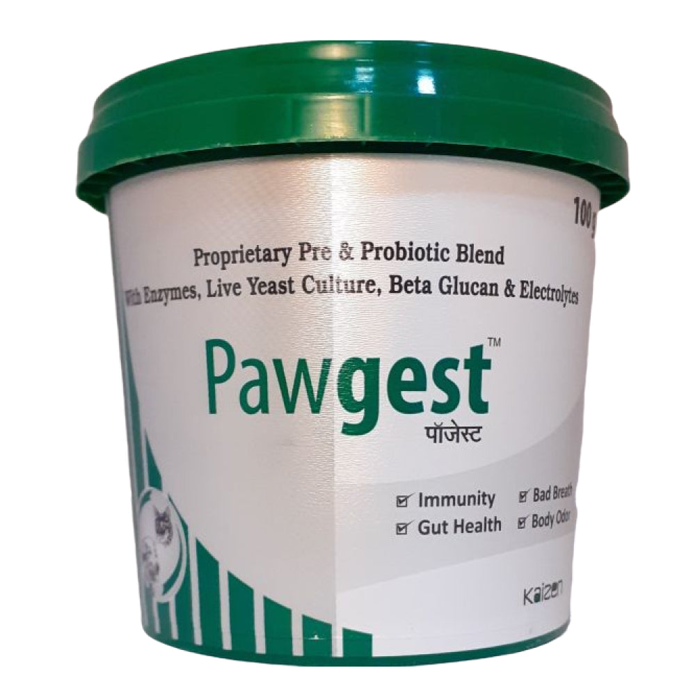 Pawgest is a pre and probiotic powder that supports a healthy gut in dogs and cats. It promotes the growth of beneficial bacteria, inhibits harmful bacteria, and strengthens the immune system. It also helps prevent urinary tract infections, reduces allergic reactions, improves skin and coat appearance, and regulates bowel function. Give your pet the benefits of Pawgest for optimal gut health and overall well-being.
