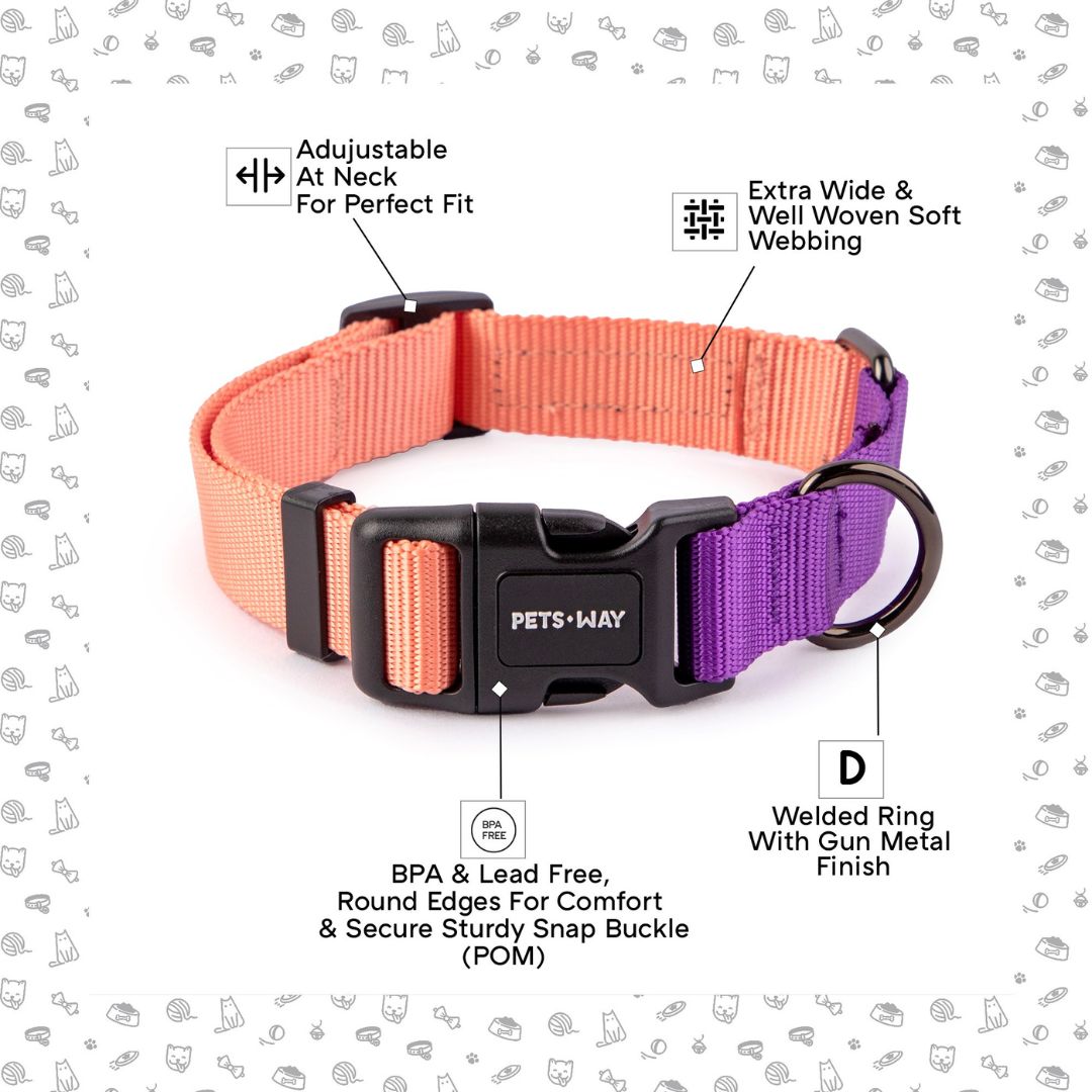 At Petsway, we believe that fashion should never compromise comfort. That's why this collar is designed to be both stylish and cozy for your precious companion. Let them express their unique personality . Introducing our new line of vibrant Dual-colored collars for dogs! Our collars are not only stylish, but they also prioritize comfort and safety for your furry friends.