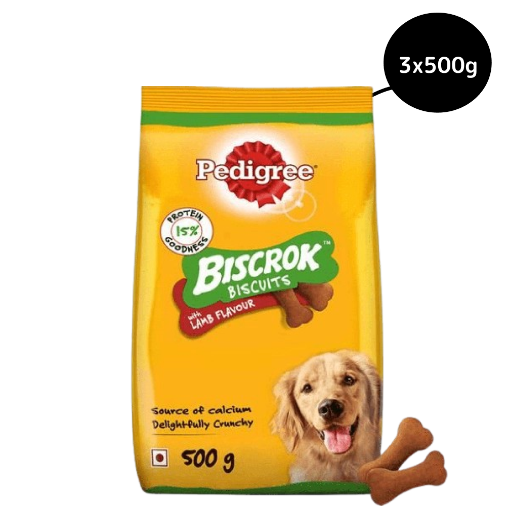 Pedigree Lamb Flavour Biscrok Biscuits Dog Treats (500g)