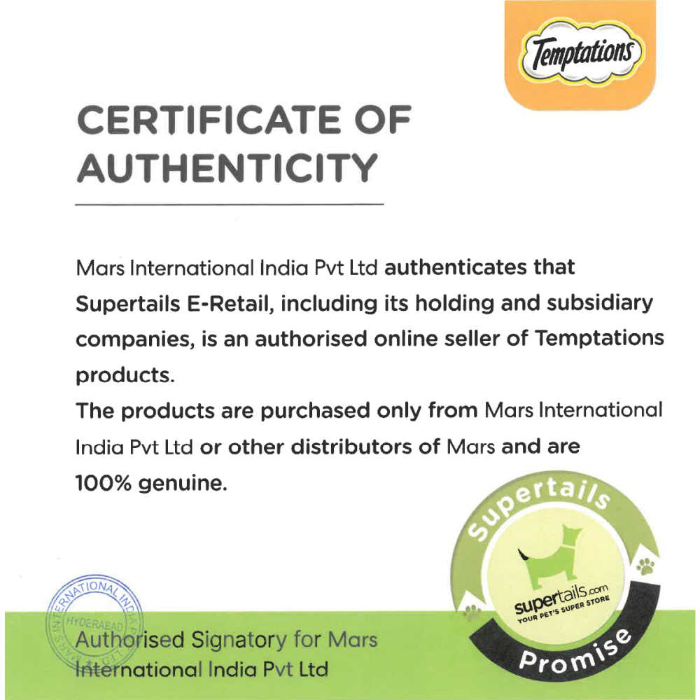 Creamylicious treats that will make your cat go meow! Delight them with Temptations Creamy Purrrr-ee Cat Treats which is loaded with deliciousness of maguro and scallop. The high magnesium content, rich vitamins like B3 & B5 and high quality protein make Temptations cat treats a healthier choice for your furball. Use it as a food topper to make your furball’s meal extra delicious & creamy or serve it in a bowl for a mess-free treating. You can even strengthen the bond with your cat by feeding Temptations treat with your hand. No matter how you feed, these treats are surely going to make your cat’s day purr-fect!