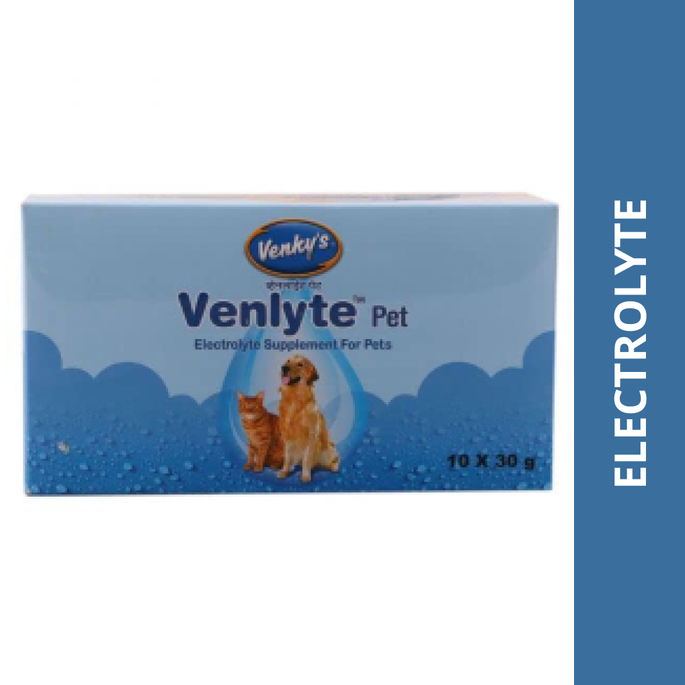 Venky's Venlyte Electrolyte Supplement For dogs & cats Is ideal to balance the electrolytes in the system. If your pooch or cat is suffering from dehydration due to ill health or due to summers, giving them Venky's Venlyte electrolyte supplement will be ideal to balance the electrolytes in the system.