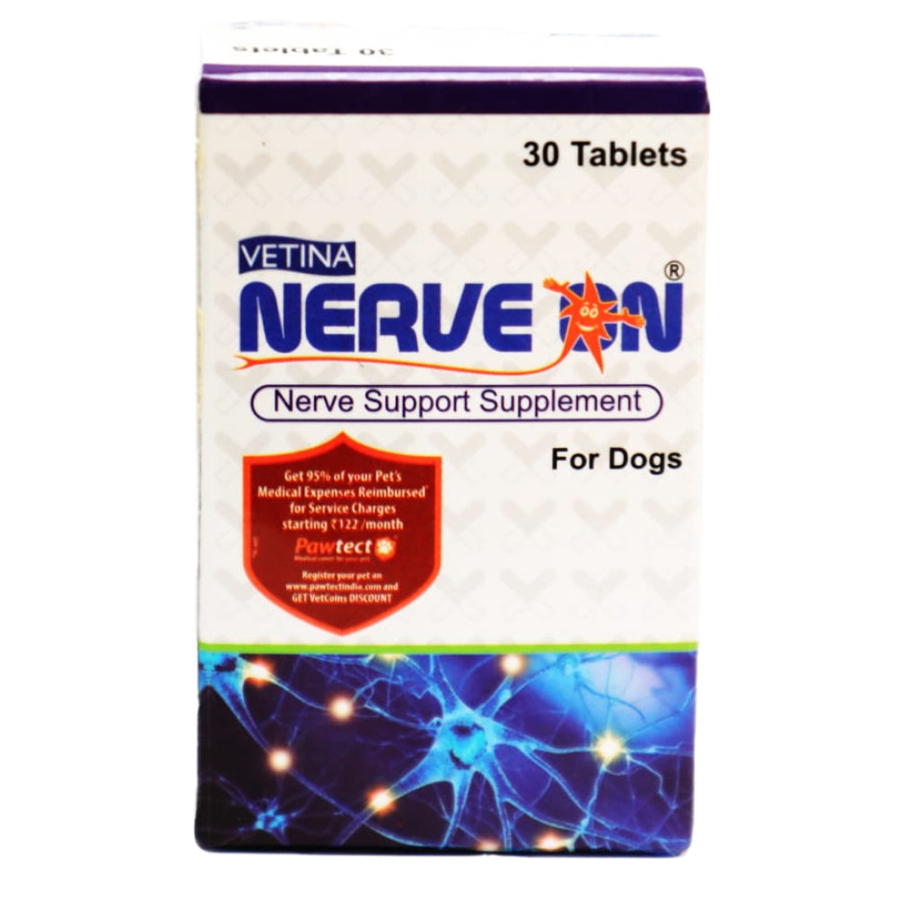 Nerve on tablet is a nerve support supplement for dog. It is nutritional supplement with combination of Methyl cobalamin, Alpha lipoic acid and Lycopene to support proper nervous system function.