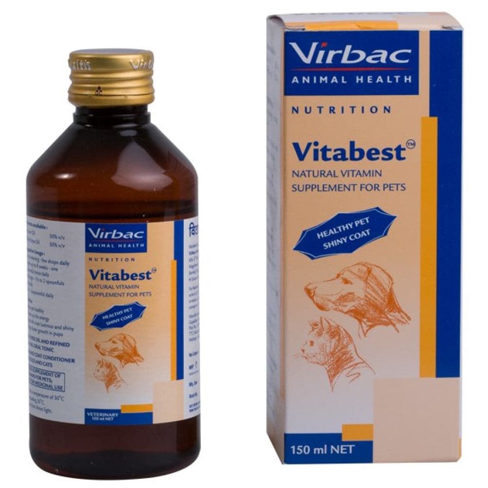 Virbac Vitabest is a balanced blend of Omega 3 and Omega 6 fatty acids. Omega 3 fatty acids in the crucial and most bioavailable form - EPA & DHA sourced from cod liver oil and Omega 6 fatty acids sourced from refined soya oil constitutes the preparation. It is also enhanced with powerful antioxidants (Vit A & E), and Vit D.