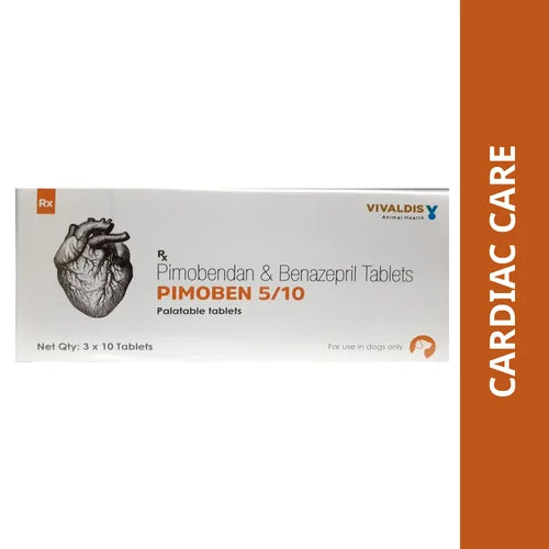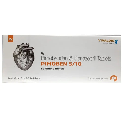 Vivaldis Pimoben Tablets are a potent heart medication designed specifically for dogs suffering from congestive heart failure (CHF) and other heart-related conditions. These tablets contain Pimobendan, a well-established cardiac drug that enhances heart function and improves the quality of life for dogs with heart issues. Available in 5mg and 10mg strengths, Pimoben tablets provide flexible dosing options to cater to the varying needs of dogs of different sizes and severities of heart conditions.