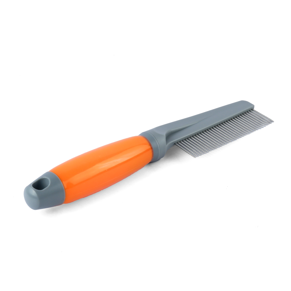 - Fine toothed comb with long teeth that penetrate the root of the coat for removing mats and tangles.