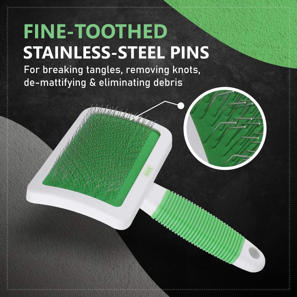 Wahl Slicker Brush is designed with soft, cushioned tips to provide a soothing and comforting massage wile grooming your small pets.